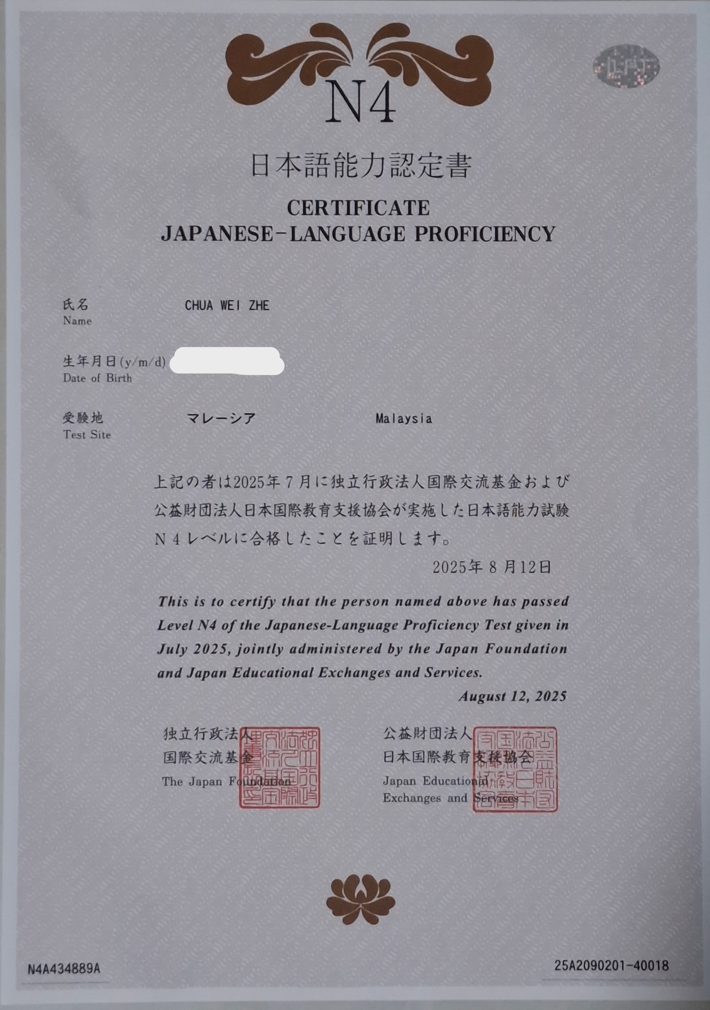Japanese Language Proficiency Test Level N4